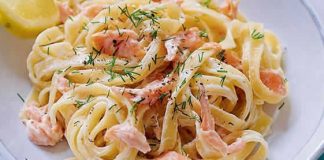 Après ajoutez les morceaux de saumon fumé puis mélangez avec la spatule.