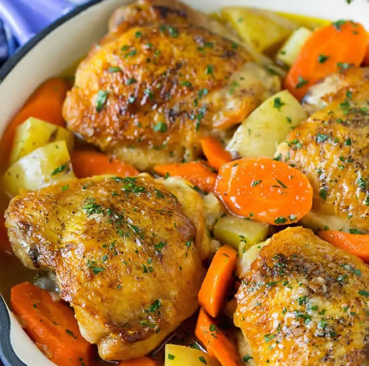 Cuisses de poulet aux carottes au cookeo , un délicieux plat de poulet aux pommes de terre et carottes pour votre dîner ce soir, Vous y trouvez ici les ingrédients pour réaliser ce plat facilement chez vous et avec votre cookeo.