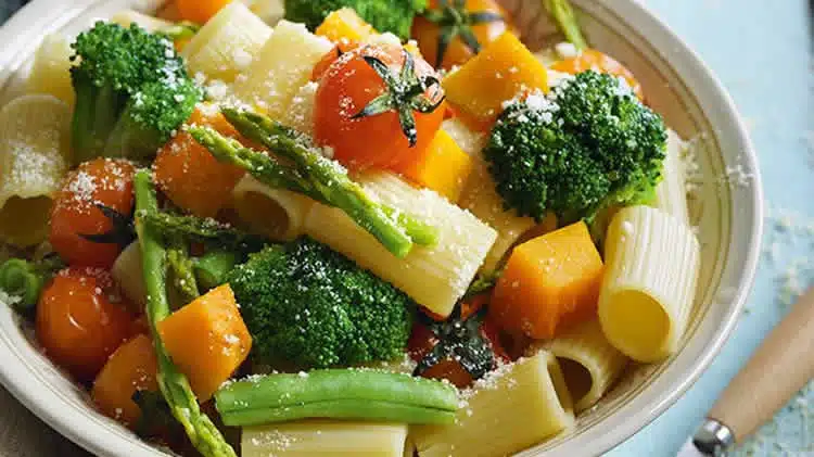 Jardinière de légumes et pâtes au cookeo , un délice pour votre dîner léger , Vous y trouvez ici les ingrédients pour réaliser ce plat facilement chez vous et avec votre cookeo.