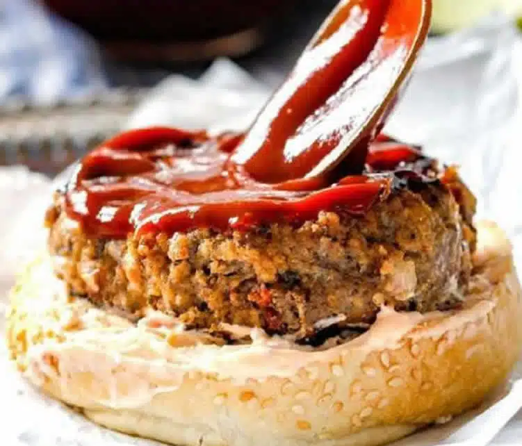 Enfin voila votre sauce ketchup maison au thermomix, servez et bon appétit à tous – c’est un sandwich fait avec une galette de viande hachée, œuf, chapelure et basilic.