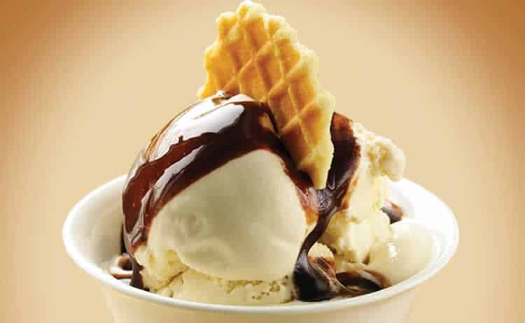 Enfin servez votre glace à la vanille pour votre dessert nappée avec de la sauce au chocolat.